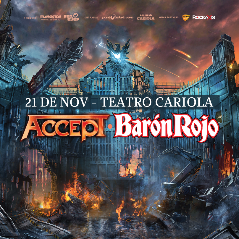 Dos leyendas del heavy rock más clásico se darán cita en Santiago en la última parte del año: los alemanes Accept y los españoles Barón Rojo, que estarán el martes 21 de noviembre en el escenario del Teatro Cariola.