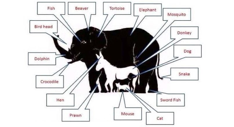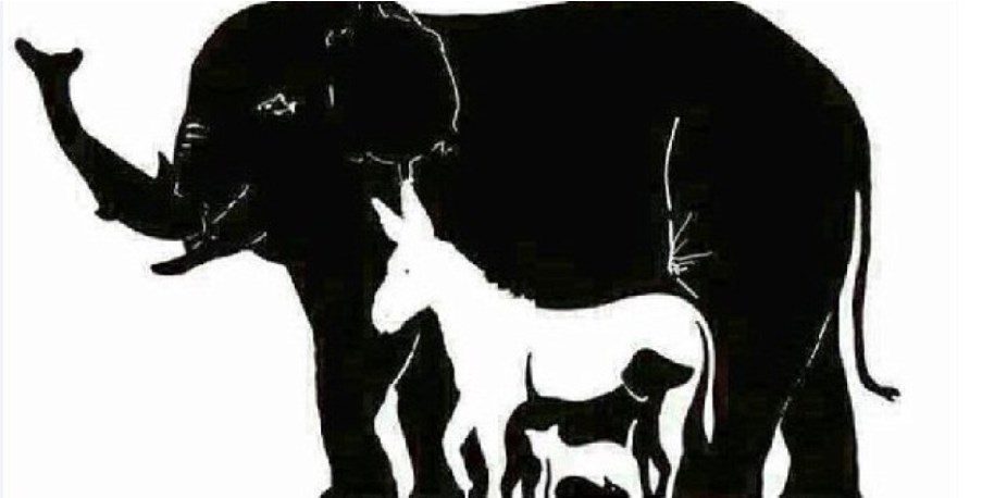 La imagen ha causado furor en las redes sociales. A simple vista se puede ver un elefante, un burro, un perro y un gato, pero si observas con atención, descubrirás a muchos más.