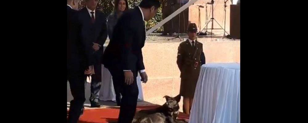 Ante la posibilidad de que el canino pudiera interrumpir la cuenta pública, aparecieron en escena dos guardias para desalojarlo.
