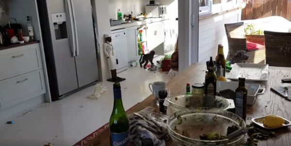 Todo se originó luego que Neil dejara abierta una ventana para refrescar el departamento. Mala idea, ya que los monos aprovecharon ese descuido para comer todo lo que encontraron a su paso.