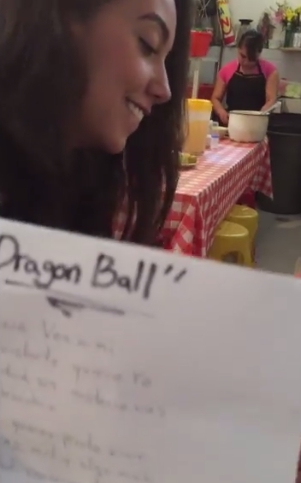 Para esto, el joven creyó que sería una buena idea leerle a su novia un poema escrito por él, pero los versos correspondían a nada más ni nada menos que la canción «Romance te quiero dar», es decir, a los créditos finales de la serie Dragon Ball.