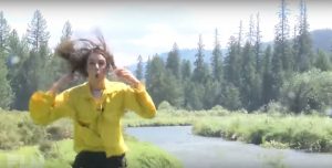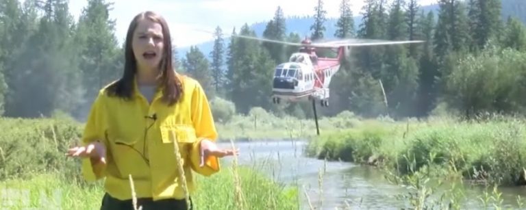 Todo ocurrió debido al asombro que sintió esta joven reportera al ver un helicóptero que pasó sobre su cabeza.