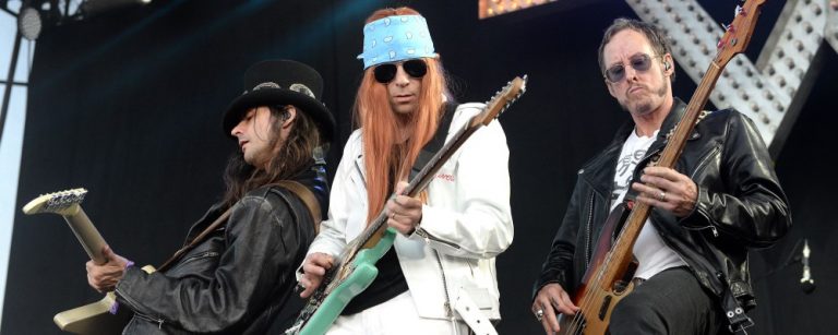 Acá podemos ver al vocalista de Weezer, Rivers Cuomo, con una larga cabellera cubierta por un pañuelo al más puro estilo Axl Rose. Por su parte, el guitarrista Brian Bell utiliza un sombrero de copa igual que Slash y Scott Shriner aparece con gafas de aviador igual que Duff McKagan-