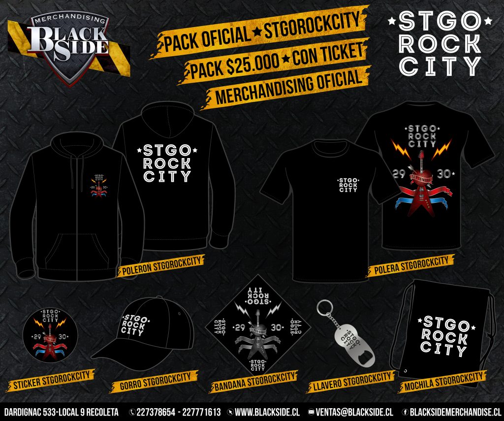 A menos de dos meses del gran festival de rock del año, Blackside presenta su promoción exclusiva para el Stgo Rock City: todos quienes compren o tengan su entrada, pueden adquirir el “Pack Stgo Rock City” que contiene unpolerón, polera, sticker para automóvil, gorro, bandana, llavero destapador y mochila oficial, por $25 mil, en la tienda Blackside (Dardignac #533, local 9, barrio Patronato).