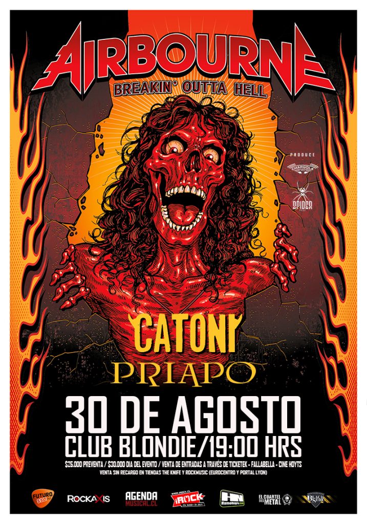 Vienen con su último disco “Breakin’ outta hell”, lanzado el año pasado, y contarán con dos bandas nacionales invitadas: Catoni, con el material de sus últimos discos “Virtual 5” y “Nuestra mafia”, y su próximo lanzamiento “Cómo hacer rock y no morir en el intento”; y el grupo Priapo, que por estos días también tienen el lanzamiento de su nuevo single “Te perdí”, versión del clásico de José Alfredo Fuentes (sábado 17 de junio, Sala SCD Vespucio).