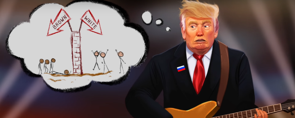 Imaginemos a Trump cantando uno de los temas más famosos de las últimas décadas como lo es “Creep” de Radiohead, pero, en vez hablar sobre sus tristes sentimientos, sólo expresa sus racistas ideologías y controvertidas acciones.