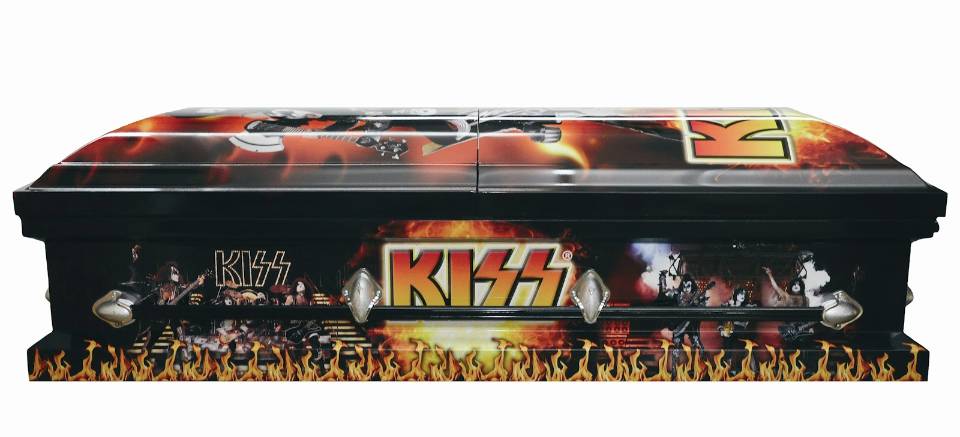 Kiss nos quiere decir que no sólo hay que vivir el rock and roll la noche entera, sino que toda la vida e incluso hasta la muerte. También hay urnas de cremación bajo la marca Kiss, monumentos conmemorativos de bronce, tarjetas de oración, libros de registro, velas y urnas de cremación para mascotas, todo diseñado con los logos del conjunto rockero.
