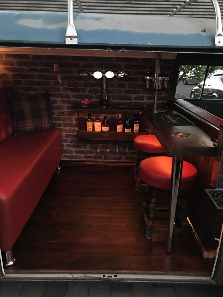 El local se llama «The Dub Inn», a propósito de que a estas furgonetas se les conoce como Vdubs en gran parte de Reino Unido. Cuenta, además, con una bola disco y un refrigerador que mantiene los bebestibles bien helados.