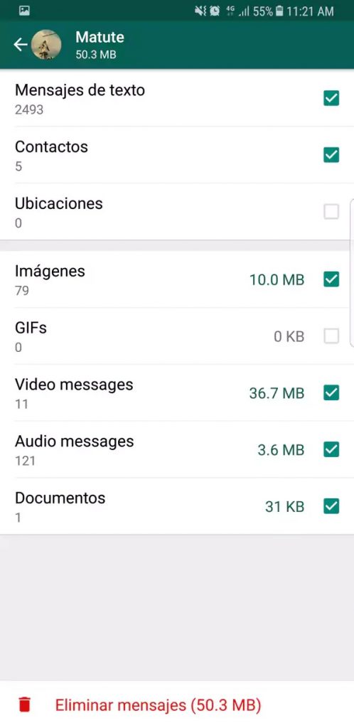 Dentro de este menú se debe entrar en «Uso de Almacenamiento» y se verá un listado con todos los chats, así como un detalle del volumen de datos compartidos por esa vía.