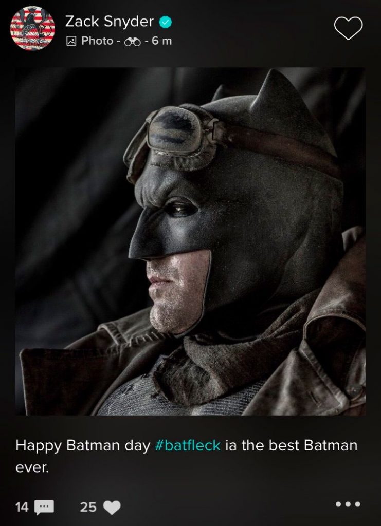 ACTITUD FUTURO Zack Snyder enciende el debate: “Ben Affleck es el mejor Batman de la historia” Por Hector Muñoz Tapia | 25 Sep, 2017. 11:58 hrs El pasado fin de semana, Zack Snyder encendió el debate al mencionar a través de redes sociales cuál es el mejor Batman de la historia, a propósito del Batman Day celebrado el pasado sábado 234 de septiembre. A su parecer, no hay ninguna duda, aunque se entiende considerando que fue el director de la última película del hombre murciélago: Ben Affleck. A través de Vero, Snyder escribió «feliz día de Batman #Batfleck es el mejor Batman de la historia». Batman Ben Affleck Zack Snyder Corrosion of Conformity confirma la muerte de Eric Eycke, su vocalista original Gene Simmons y la decisión de Kiss de no actuar para Donald Trump Sigue a FUTURO.cl en Google Discover Recibe nuestros contenidos directamente en tu feed. Seguir en Google Contenido patrocinado