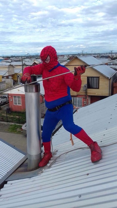 ¿Para qué limpiar chimeneas de forma normal, si se puede limpiar disfrazado? Ese es el servicio que presta Rolando González, que buscando darle un nuevo enfoque a su negocio, empezó a subirse a los techos de las casas disfrazado de Spiderman para deleite también de los niños.