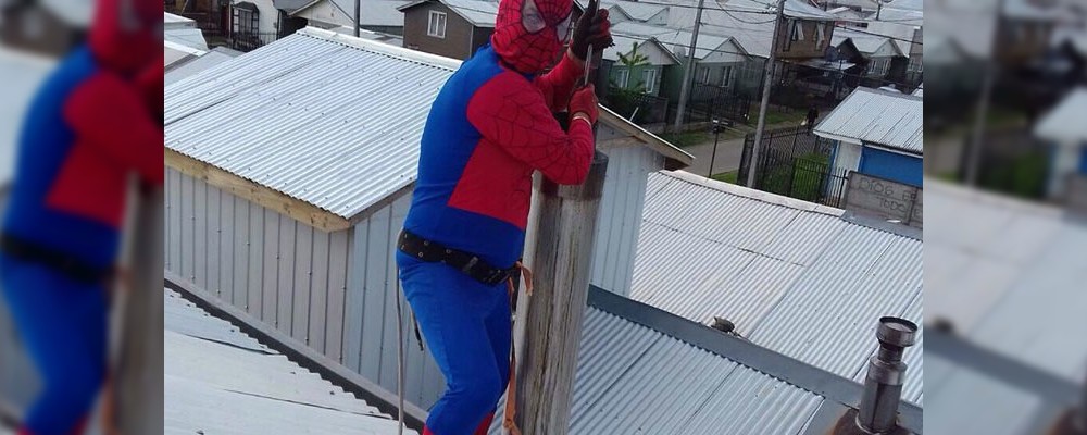 ¿Para qué limpiar chimeneas de forma normal, si se puede limpiar disfrazado? Ese es el servicio que presta Rolando González, que buscando darle un nuevo enfoque a su negocio, empezó a subirse a los techos de las casas disfrazado de Spiderman para deleite también de los niños.