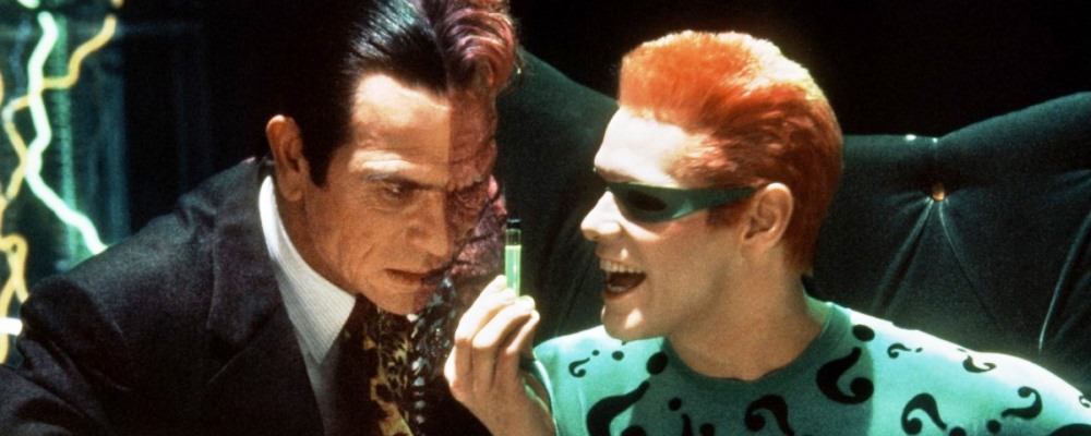 De todas maneras, el film del 95 tenía algunas cosas buenas, como la presencia maníaca de Jim Carrey como El Acertijo. Eso sí, menos efectivo fue el desempeño de Tommy Lee Jones como Dos Caras. El legendario actor parecía creer que todos los villanos de Batman eran variaciones del Guasón, por lo que durante la mayoría de la película, el actor parece estar haciendo una imitación de Jack Nicholson aunque su personaje no lo amerita. Sin embargo, era la energía elástica de Carrey la que sostenía la cinta.