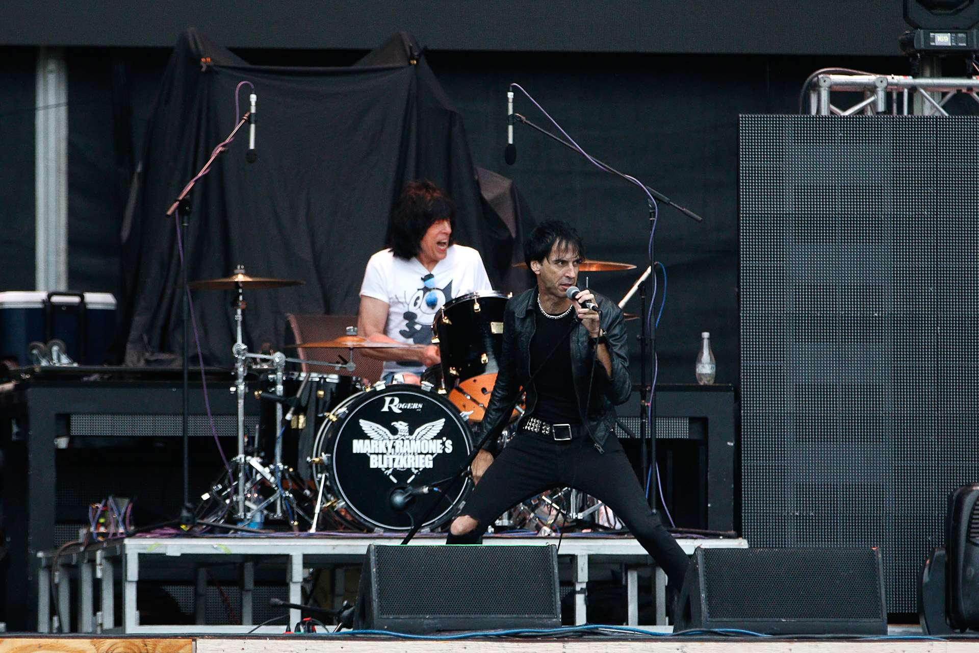 Claro, quizás fue el más bajo de sus espectáculos dados antes en Chile, pero no por eso vamos a echar por la borda un concierto que disfrutamos de principio a fin y que cumplió con la esencia y marca ramonera: temas directos al centro del corazón, sin pausa, comandados por el grito de guerra “one/two/three/four” original del gran Dee Dee que daban paso a himnos como “Rock N’ Roll High School”, “Judy is a Punk”, “Do You Remember Rock N’ Roll Radio?”, “The KKK Took My Baby Away”… en fin, podría mencionar todo el setlist acá. Ya finalizando la actuación llegó el épico instante de cantar el cover punk de “Have You Ever Seen the Rain?” bajo una lluvia que cada vez bajaba en intensidad, para luego concluir con la versión de “What a Wonderful World” y la inmortal “Blitzkrieg Bop” (escuchar como todos los presentes en el estadio gritaban “Hey! Ho! Let’s Go!” ponía los pelos de punta).