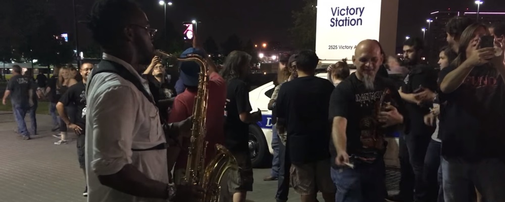 Hace unos meses, cuando Iron Maiden terminó de tocar en Dallas en marco de la gira del disco “The Book Of Souls”, un músico tuvo la brillante idea esperar a los fanáticos de la doncella de hierro afuera del recital e interpretar un clásico de la banda, pero en una clave más jazzera con su saxofón.