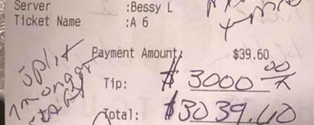 De hecho, fue esa nota la que le confirmó a la camarera que la suma escrita por el cliente estaba correcta y no se trataba de un error.
