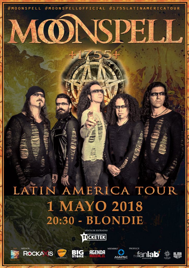Ya es oficial, los portugueses Moonspell regresan a nuestro país, como parte de su gira latinoamericana 2018, que el grupo acaba de anunciar orgullosamente: “Consideramos esto un renovado comienzo tras los eventos del último año y queremos que todos nuestros lobos y brujas de Sudamérica sepan que les presentaremos uno de los mejores shows que Moonspell alguna vez ha dado en vivo, tal como ya han visto miles de personas en Europa”. El día es el martes 1 de mayo en el Club Blondie.