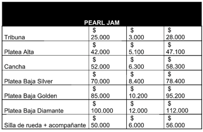 Las entradas para el show de Pearl Jam en el Movistar Arena estarían disponibles desde el mediodía del viernes 2 de febrero en el sistema Puntoticket, con los siguientes valores…