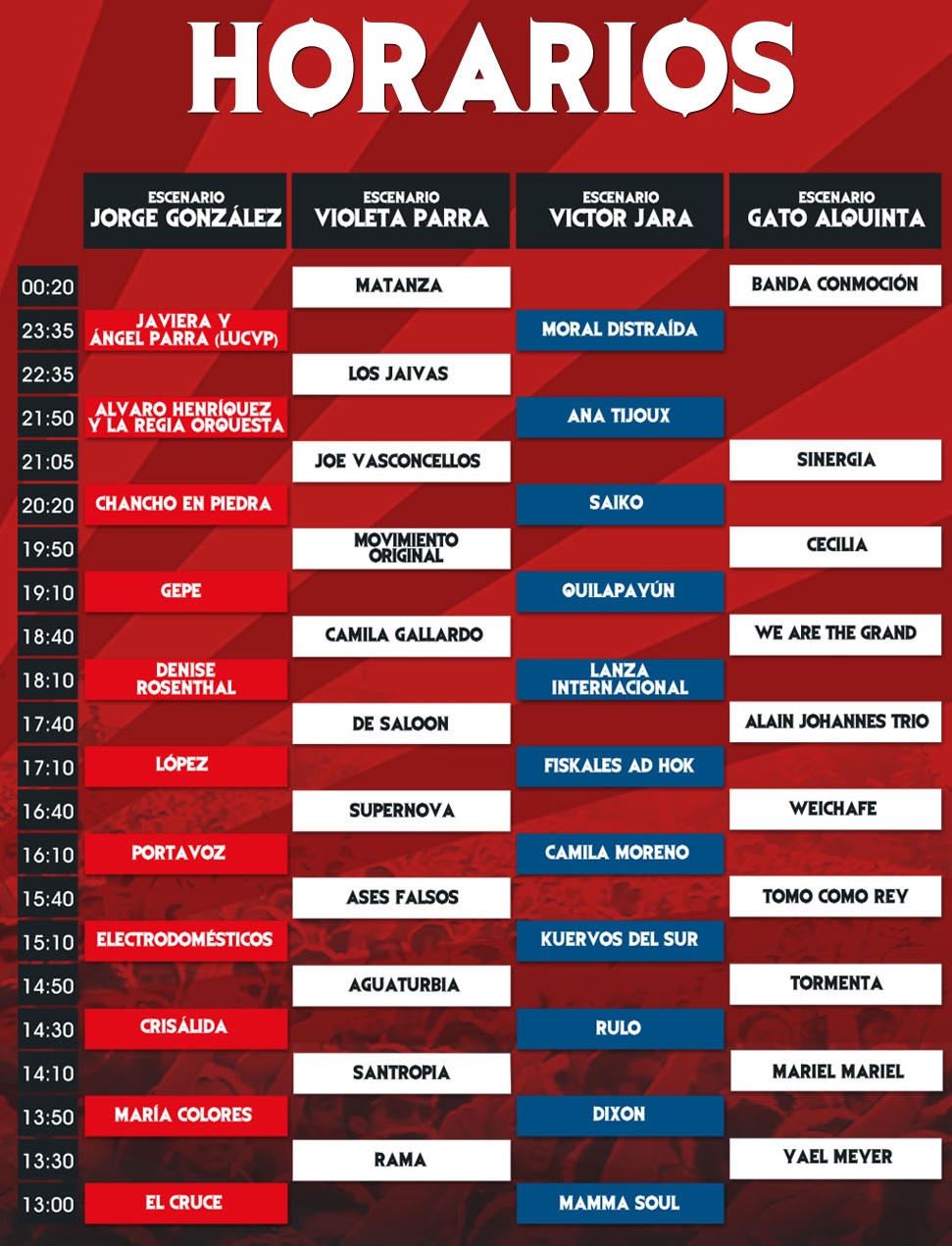 Cuando faltan solo 19 días, se revelaron los horarios de los artistas que serán parte de La Cumbre del Rock Chileno el póximo sábado 27 de enero ene l Club Hípico.