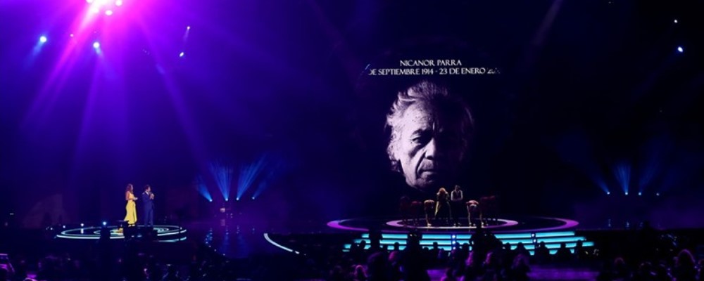 La más reciente jornada del Festival de Viña se rindió un homenaje al recientemente fallecido físico y anti-poeta Nicanor Parra, en donde participaron Denise de Aguaturbia y el «guaripola guachaca», Dióscoro Rojas.
