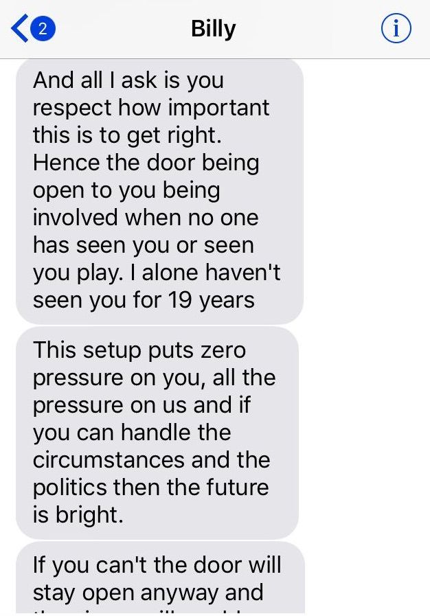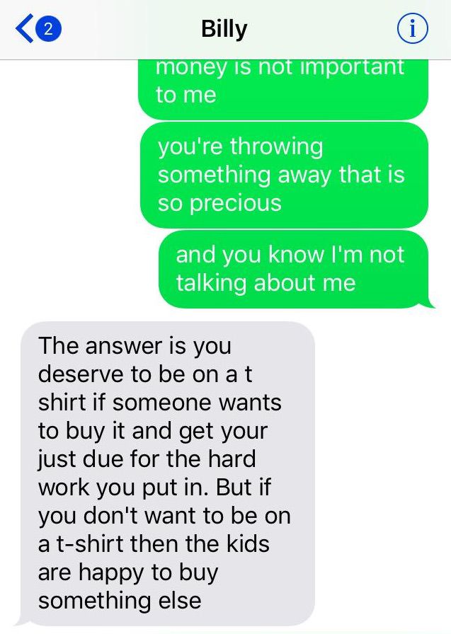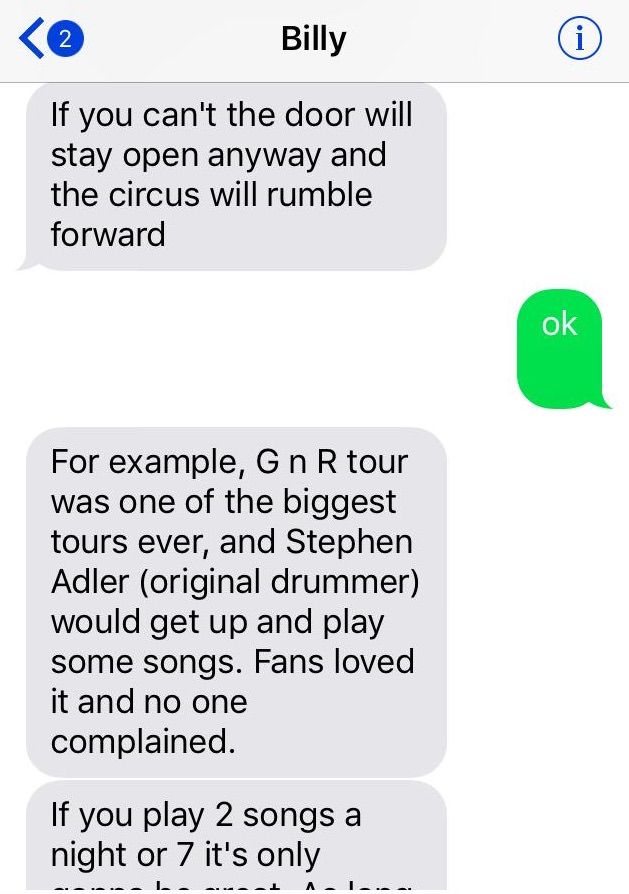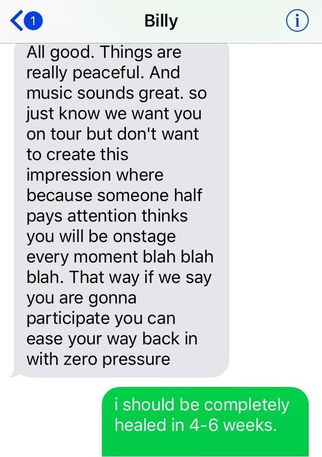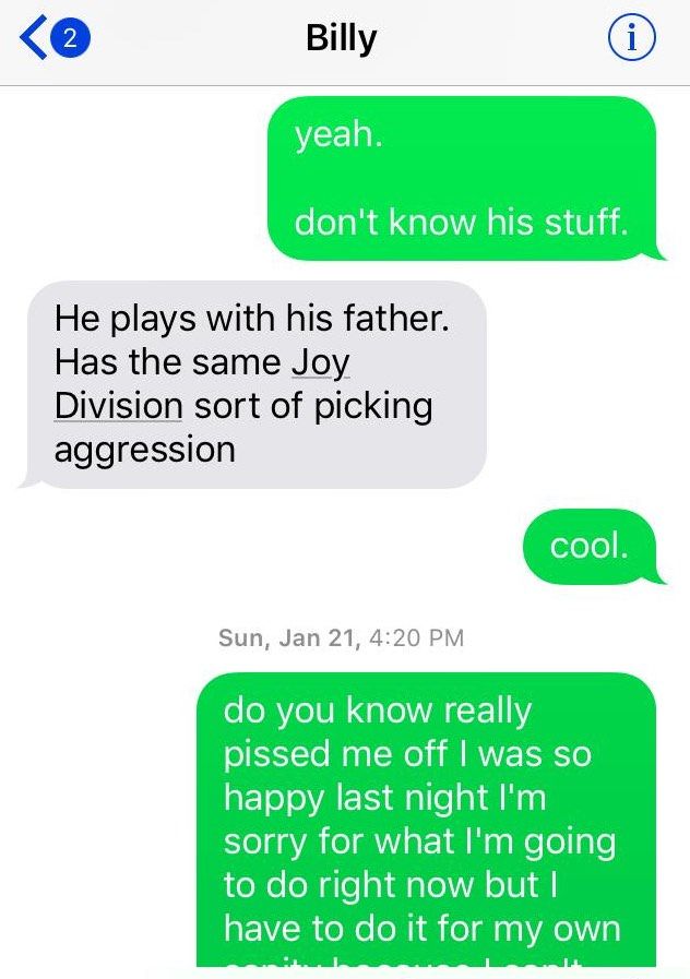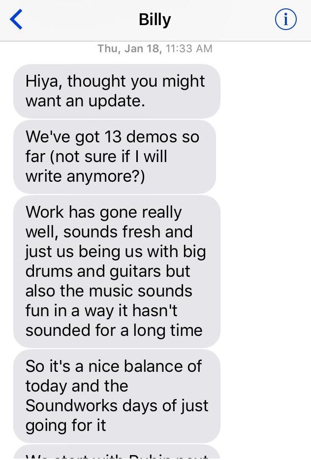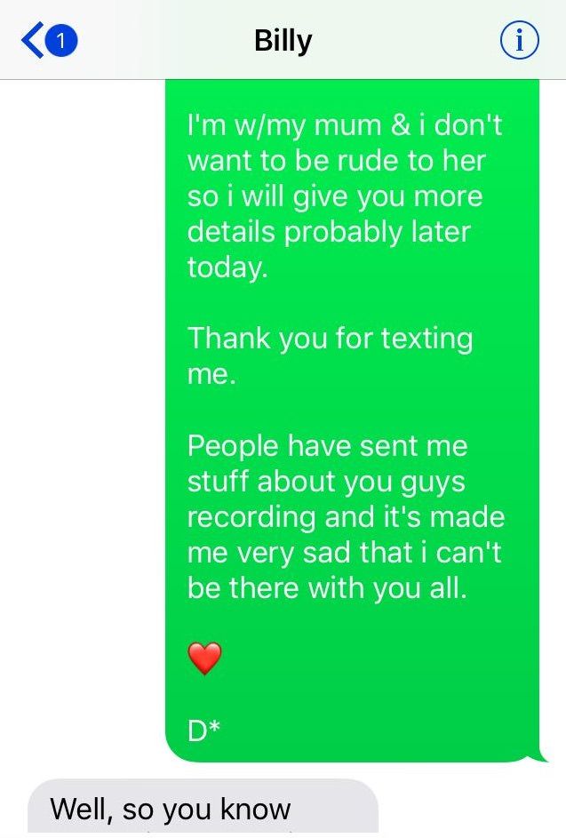 D’arcy compartió una serie de mensajes de texto en donde le reprochó a Corgan su comportamiento, y en los que además se ve que él le aseguró que tanto Chamberlin como Iha estaban de acuerdo en reunirse sin ella. “Intenté lo mejor para convencer a Billy de lo contrario… Le dije que estaba tirando algo precioso. A Él no le importa”, agregó.