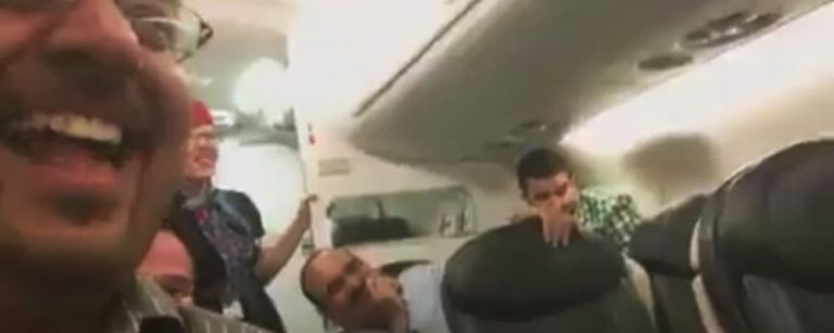 El hombre llamó a su mujer para contarle que el vuelo se había cancelado y todos en el avión, incluyendo una azafata, explotaron de la risa.