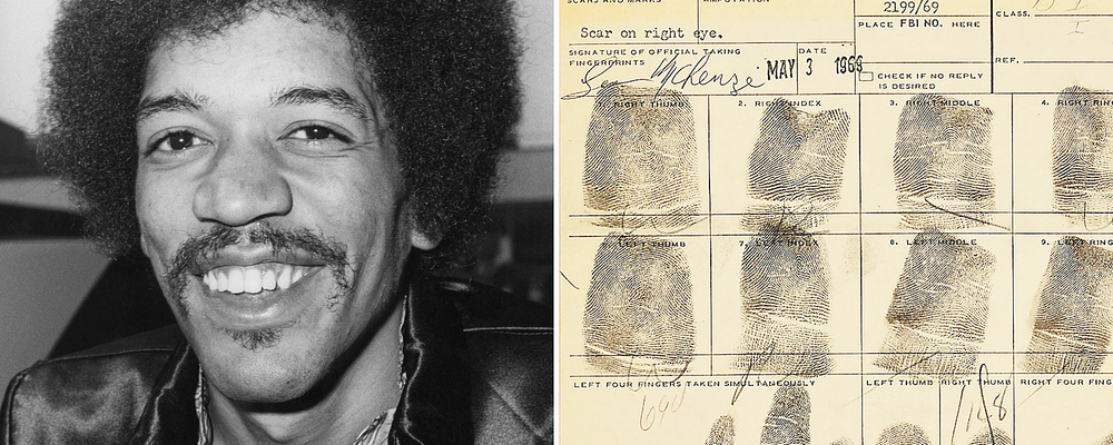 Una tarjeta que registra el arresto de Hendrix se podría vender por más de $14mil dólares.