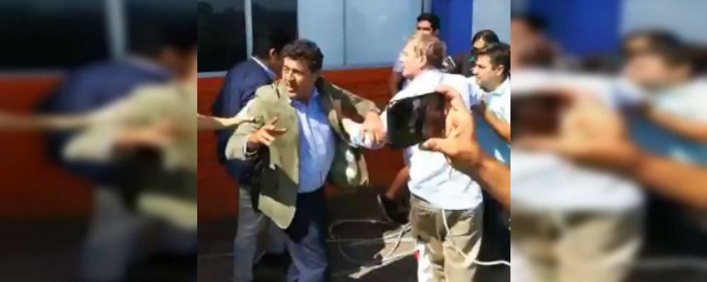En las imágenes se puede apreciar como una turba de jóvenes se abalanza sobre el exdiputado, quien fue golpeado y mojado, mientras se oyen insultos en su contra.