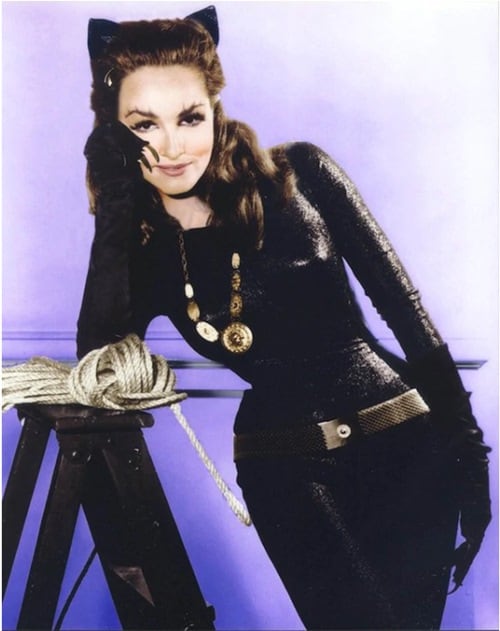 Sobre su recordado papel en la serie de Batman, la actriz contó que no hizo audición y confesó que de algún modo su hermano era responsable de que ella decidiera aceptar el trabajo: «Estaba con John y cinco de sus amigos. Estaban todos sentados en mi sofá y recibí una llamada. Respondí. Alguien estaba preguntando sobre esta serie de Batman. yo no sabía nada sobre eso. ‘¿Te gustaría interpretar a Gatúbela?’, preguntaron. Yo respondí, ‘¿Qué quieres decir? ¡¿Qué es eso ?!’, los chicos escucharon mi conversación y tres de ellos se levantaron del sofá gritando: ‘¡Es nuestro programa favorito! Así que esencialmente, mi hermano me empujó a salir por la puerta para subir al avión al día siguiente a California para una adaptación de vestuario. Cuatro días después, estaba en el set'».