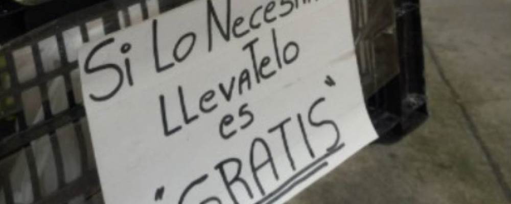 “Si lo necesitas, llévatelo, es GRATIS”, dice el cartel que está a las afueras del almacén ubicado en las calles Errazuriz y Almirante Señoret.