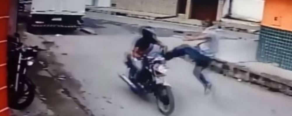 Como se puede apreciar en las imágenes, el hombre, conductor de un camión, se abalanzó sobre uno de ellos y comenzó a darle puñetazos y patadas. Al ver que la situación se salía de control, el ladrón que estaba en la motocicleta emprendió la marcha para huir, pero fue derribado de una sorprendente «patada voladora», publica RT.