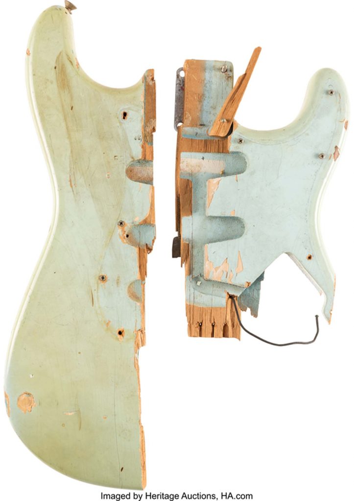 Se estima que lo que quedó de la Sonic Blue Fender Stratocaster de 1964 tendría precio inicial de 20 mil dólares.