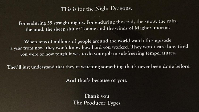 ACTITUD FUTURO Temporada final de «Game Of Thrones» tendrá batalla que se filmó en 55 días El cierre de la serie de HBO se estrena el próximo año e incluye esta filmación récord. Por Hector Muñoz Tapia | 10 Abr, 2018. 01:02 hrs El cierre de la serie de HBO se estrena el próximo año e incluye esta filmación récord. Falta más de un año para el estreno de la octava y última temporada de «Game Of Thrones», y el ciclo aparentemente tendrá la batalla más épica de la exitosa serie de HBO En las últimas horas se ha viralizado una nota de la producción de la célebre ficción, donde se agradece a las personas que participaron de la grabación de una secuencia de guerra que se filmó durante 55 noches seguidas. A modo de parámetro, algunas de las batallas más impresionantes de «Game Of Thrones», como el enfrentamiento entre Jon Snow y Ramsay Bolton de la sexta temporada, tomó un mes en grabarse. Game of Thrones HBO "Los Simpson" enfrentan polémica racial por Apu Casos de VIH en Chile han aumentado en un 96 % desde 2010 Sigue a FUTURO.cl en Google Discover Recibe nuestros contenidos directamente en tu feed. Seguir en Google Contenido patrocinado