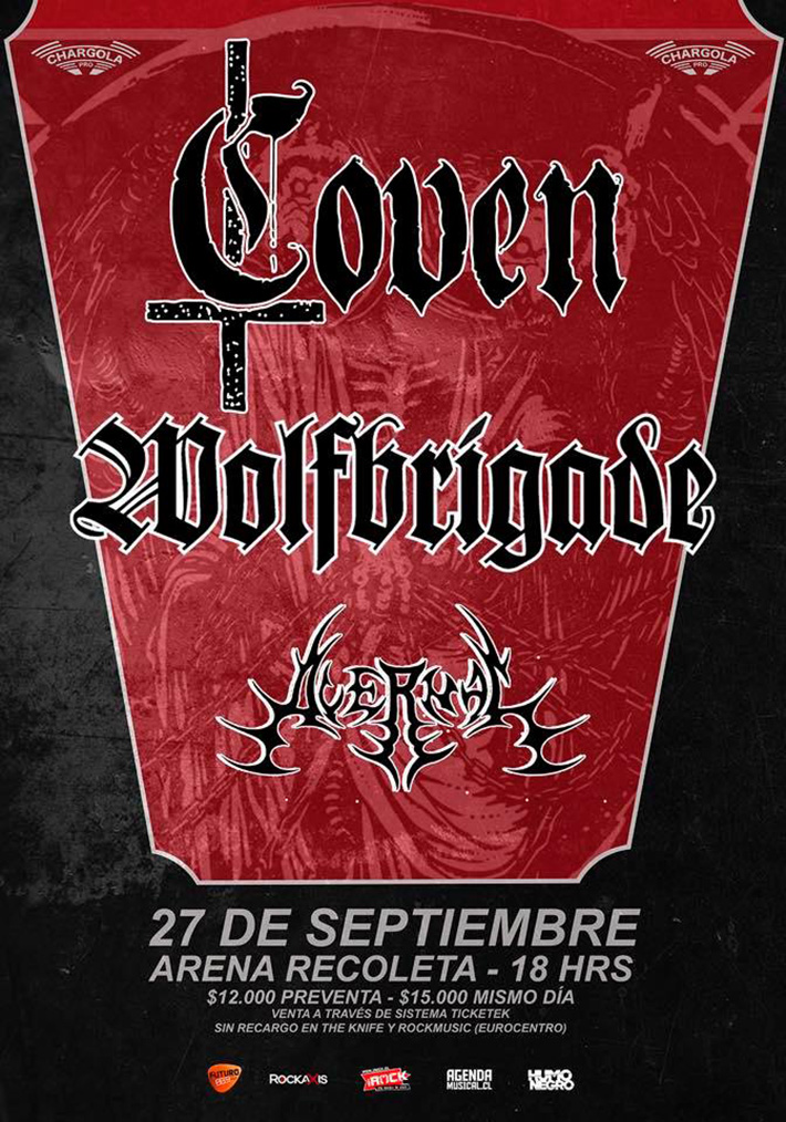 Se confirma nuevo concierto para nuestro país: Coven viene por primera vez a Chile. El grupo estadounidense de rock psicodélico formado a fines de los 70, que fue pionero en los contenidos de ocultismo y satanismo en el rock, siendo un referente para géneros que se desarrollaron posteriormente como el heavy metal y el rock gótico.