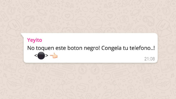 Desde hace algunas semanas que los usuarios de WhatsApp están recibiendo un mensaje con un botón negro acompañado por un emoji de mano, acompañado del siguiente mensaje: «No toquen este botón negro! Congela tu telefono..!». Y claramente lo primero que hacen todos es tocar dicho botón. Resultando increíblemente en la aplicación bloqueada.