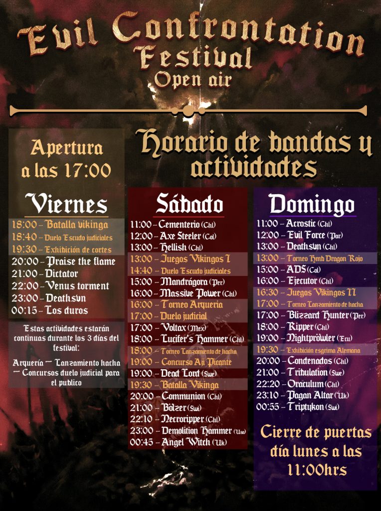 Revisa los horarios definitivos y las actividades de Evil Confrontation Open Air a continuación…