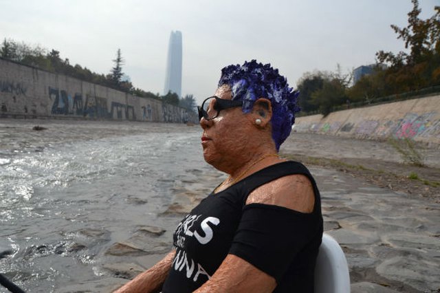 Se trata de una intervención artística de Gonzalo Tapia, quien colocó un muñeco de la cantante en la ribera del río capitalino.