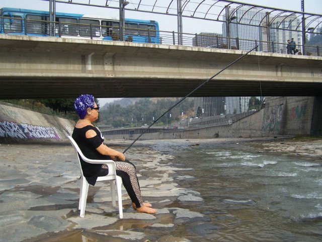 ¿Patricia Maldonado pescando en el río Mapocho?