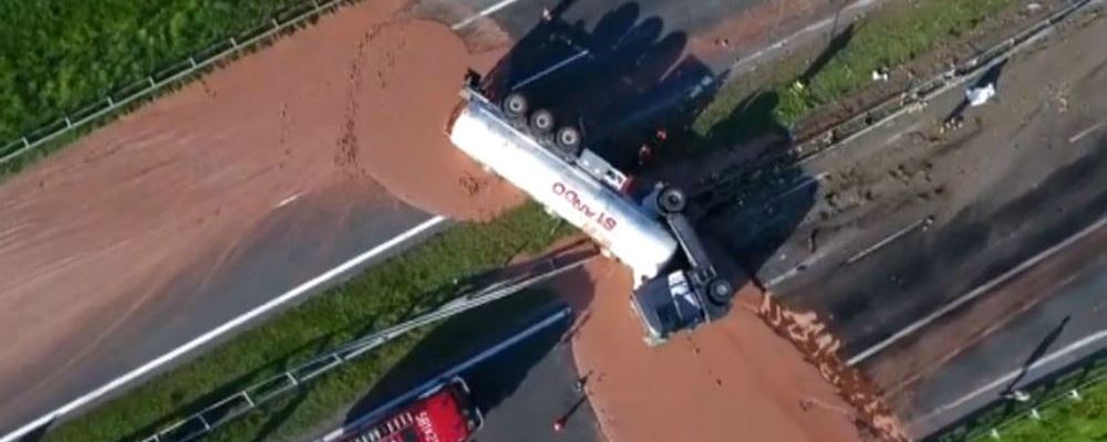 El hecho ocurrió en una ruta cerca de la localidad polaca de Graboszevo, donde se vertieron 12 toneladas del delicioso chocolate, causando el cierre de la autopista en ambos sentidos, según señala ABC.