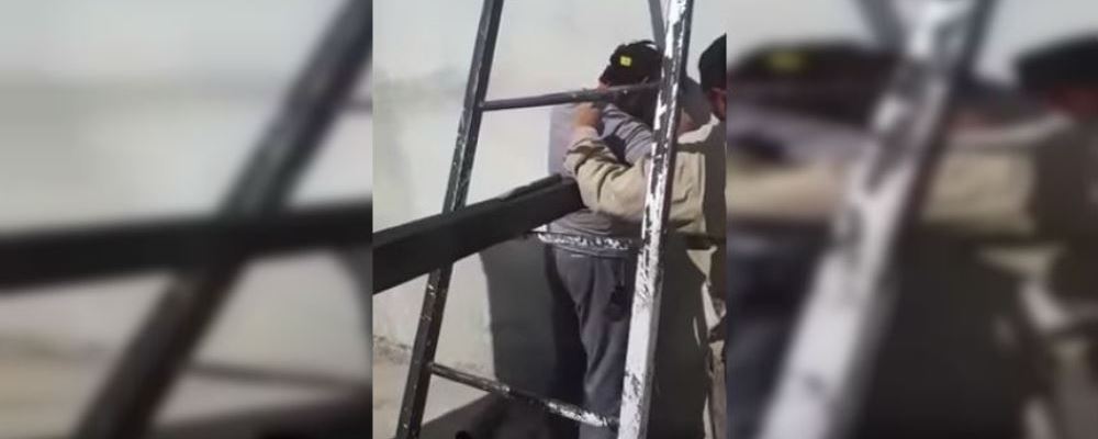 El problema fue que los trabajadores de la construcción no se percataron que una escalera quedó entre el caño que estaban soldando, lo que fue captado en video por uno de sus colegas.