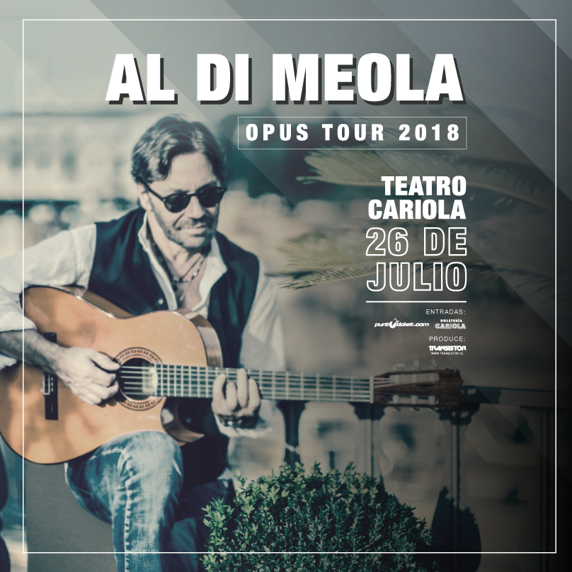Como habíamos publicado hace algunos días, solo faltaba la confirmación de parte de la producción de que Al Di Meola estaría tocando nuevamente en Chile, según el propio guitarrista había asegurado en sus redes sociales. Finalmente, la productora Transistor ratificó que el clásico músico del jazz fusión, agendó su show en nuestro país, para el jueves 26 de julio en el Teatro Cariola.