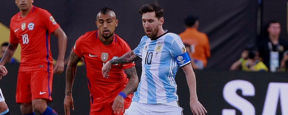 El texto publicado por Vidal está acompañado por dos copas, recordando las dos finales de América que Chile le arrebató a Argentina.