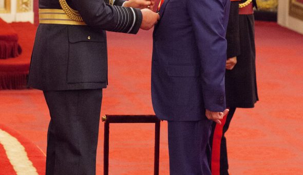 «Si no fuera por mis hermanos, yo no estaría aquí», dijo el cantante tras ser condecorado por el príncipe Carlos.