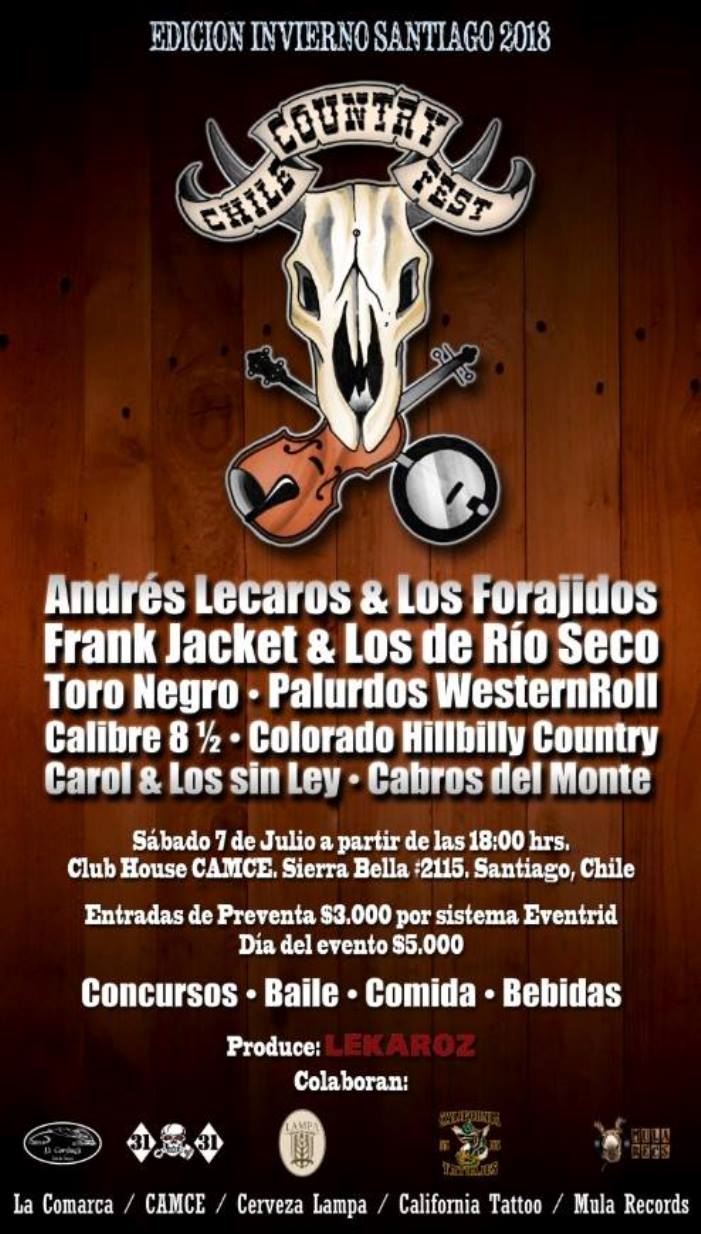 Un conglomerado de artistas y bandas ligados a esta corriente se unieron para mostrar en un único escenario estilos como el outlaw country, el bluegrass, el western swing, el county blues, el country rock y más, a cargo de 8 agrupaciones de distintos puntos del país: Andrés Lecaros & Los Forajidos, Frank Jacket y Los del Río Seco, Toro Negro, Palurdos Western&Roll, Calibre 81/2, Colorado Hillbilly Country, Carol & Los Sin Ley y Cabros del Monte.