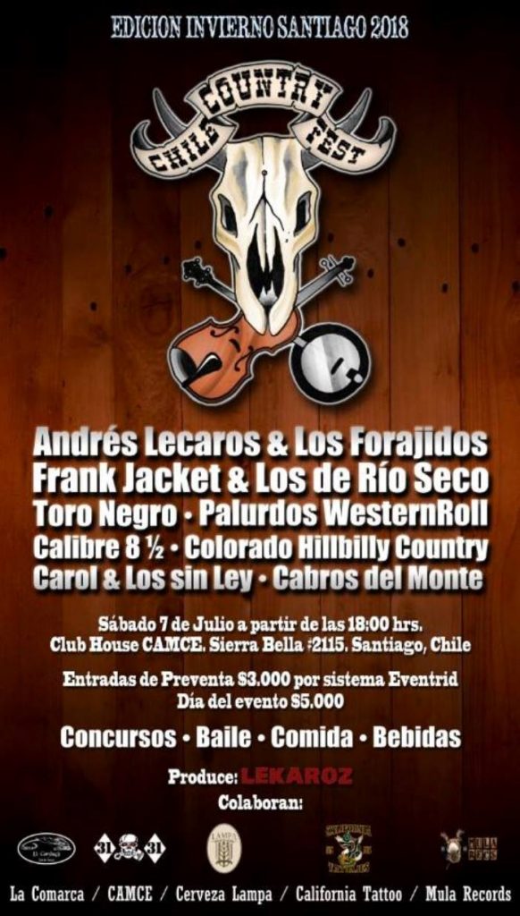 Chile County Fest 2018 se realizará el sábado 7 de julio en el Club House CAMCE, Santiago Centro, y además de música, tendrá concurso de cerveza, de comida, clases de country y otras actividades.
