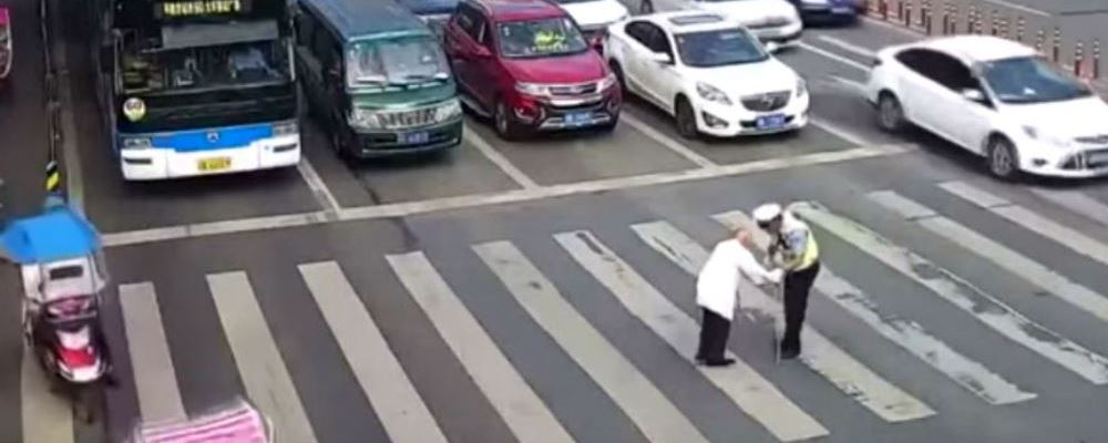 El noble gesto de un policía con un anciano que no podía cruzar la calle