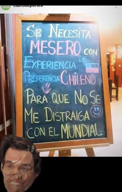 Si hasta Georgina Rodríguez, la novia de Cristiano Ronaldo, se burla de los pobres chilenos. La argentina subió una foto a su cuenta de Instagram en la que aparece un cartel de un restaurante pidiendo un mesero “de preferencia chileno para que no se me distraiga con el Mundial”