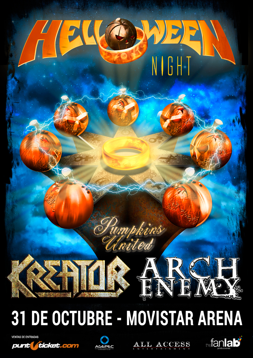Esta “Helloween Night” trae el show que la banda alemana ha estado presentando con su gira Pumpkins United por todo el mundo en este último año. El tour marca el regreso del vocalista Michael Kiske y el guitarrista/cantante Kai Hansen, con quienes inmortalizaron sus fundamentales discos “Keeper of the seven keys” en los 80 y prácticamente fundaron el power metal como lo conocemos hasta hoy. Se suman a la formación actual, encabezada por el vocalista Andi Deris y los históricos Michael Weikath (guitarra) y Markus Grosskopf (bajo). Completan la alineación Sascha Gerstner (guitarra) y Dani Löble (batería).