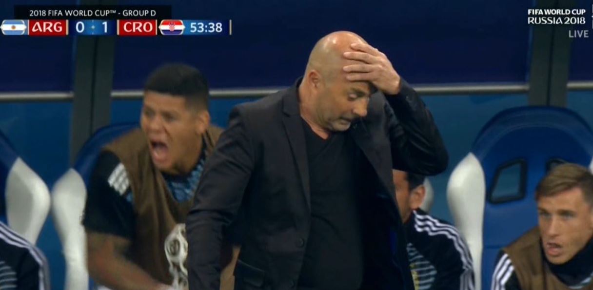 Jorge Sampaoli reacciona impactado tras grosero error de Willy Caballero en el partido entre Argentina y Croacia