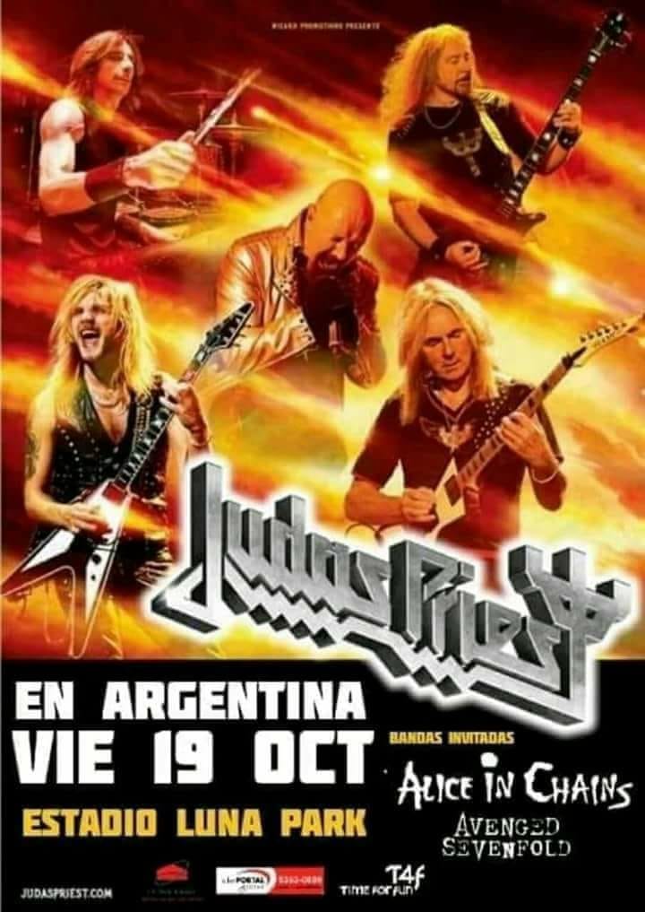 A través de redes sociales de fanáticos, comenzó a circular un afiche que daría por hecho que los dioses del metal estarían tocando el viernes 19 de octubre en el Estadio Luna Park de Buenos Aires, Argentina, con Alice In Chains y Avenged Sevenfold completando un imperdible cartel.